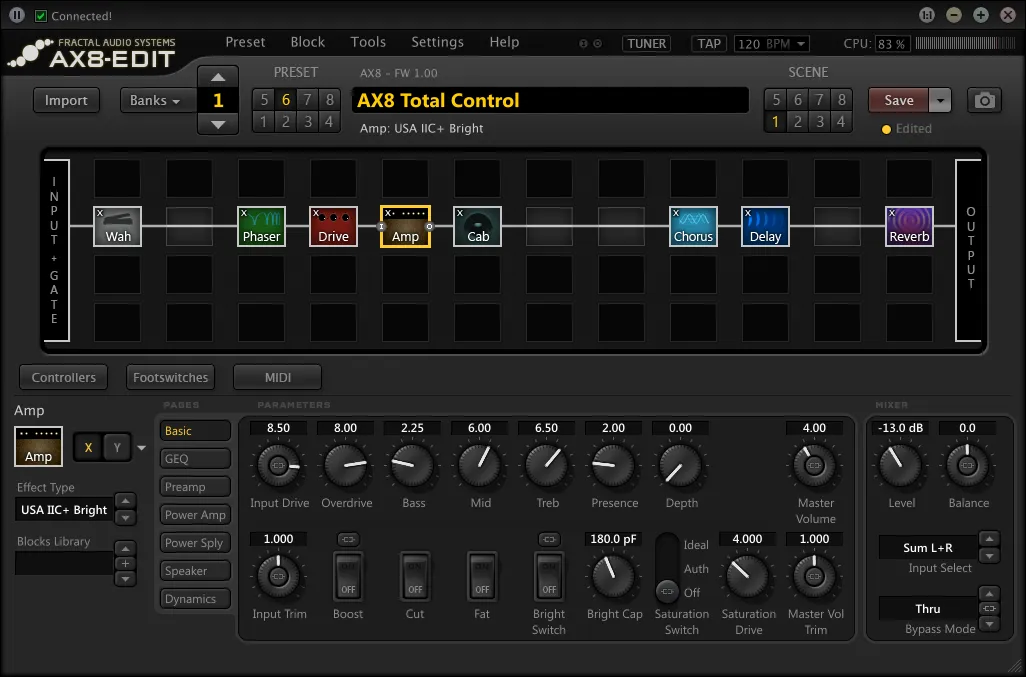 Unleash your creativity with AX8-Edit, a free software editor/librarian for the AX8 Amp Modeler + Multi-Fx Pedalboard.