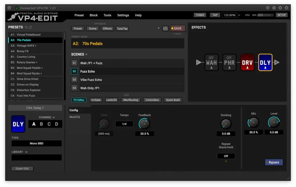 VP4-Edit is a free, intuitive software editor for the VP4. This app allows you to easily create, edit, and manage your VP4 from your connected Mac or PC, providing a fast and user-friendly interface. Whether you’re dialing in effects, building scenes, or managing presets, VP4-Edit simplifies the process, helping you get the most out of your unit. It even includes bonus features not available on the VP4 itself, such as Block Library, Channel Copy, Scene Swap, and more. You can download VP4-Edit for Mac or Windows below.